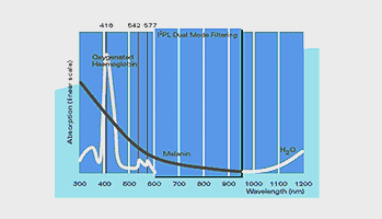 이중필터링 기술로 피부에 유해한 950nm이상대의 파장대를 차단합니다.