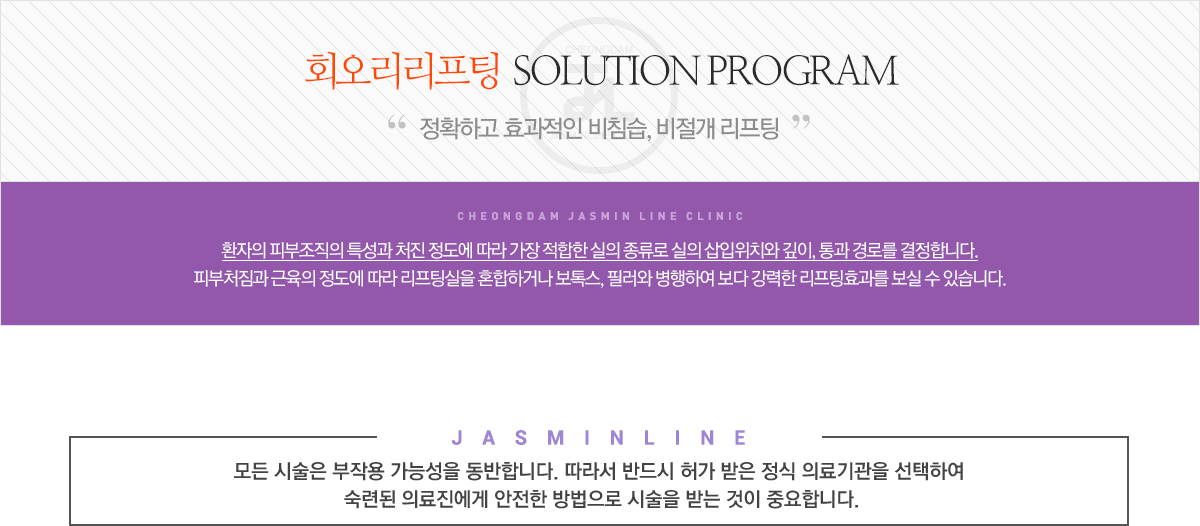 부위별 주입되는 실시술부위에 따라 주입되는 실의 개수가 추가될수록 더욱 효과적입니다.