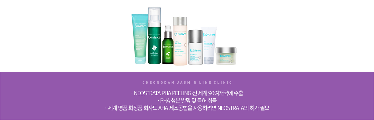 AHA특허기술을 가진 네오스트라타에서 만든 차세대 필링제인 PHA필링은 연예인필링이라고도 불리는데 시술 시 보톡스를 맞은 것처럼 피부 탄력이 좋아지고 강력한 보습효과가 있어 메마른 피부의 수분 보충 및 피부 화이트닝에 도움이 됩니다. PHA의 성분이자 인체 내 천연물질 중 하나인 갈락토오스와 글루콘산은 상처 치유 및 단백질 합성을 촉진시키는 효과가 있어 피부 탄력 및 재생에 효과적입니다.