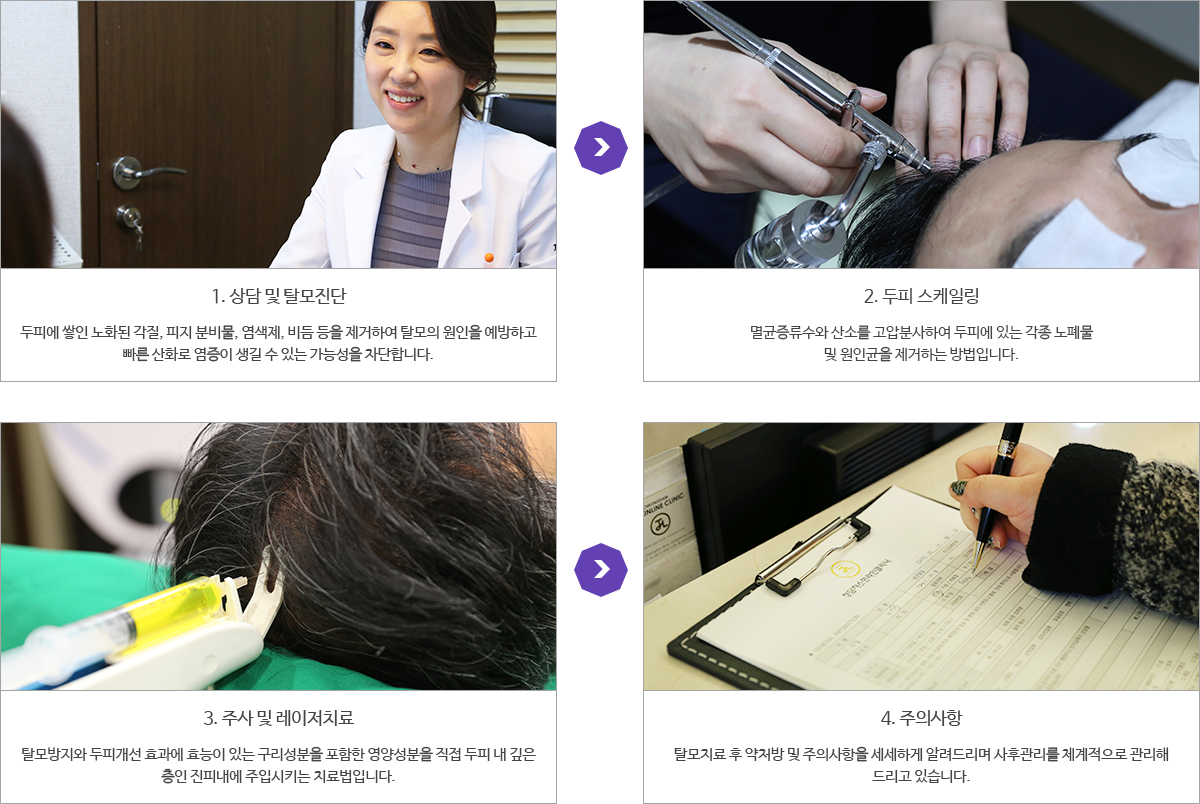 환자의 탈모진행상태에 따라 가장 적합한 치료프로그램과 재생관리를 복합적으로 진행하여 치료효과를 높였습니다.