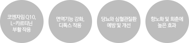 유해산소와 세포산화를 막아주어 세포의 노화를 방지하여 정상수준에 가깝게 회복시키는 효과가 있습니다.